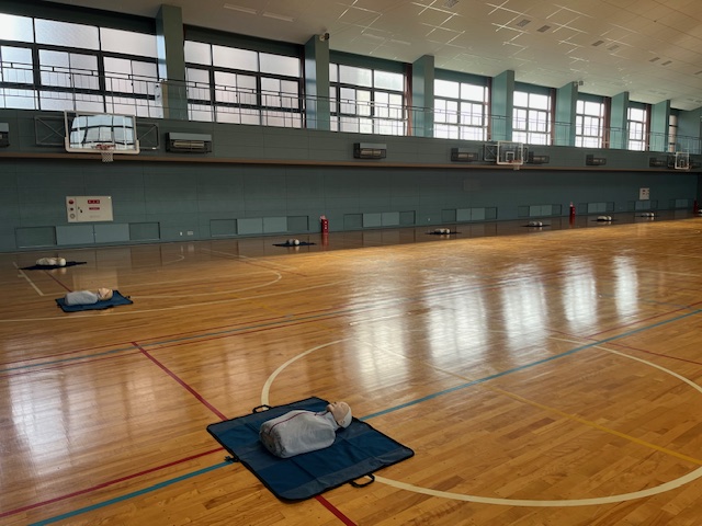 訓練用AEDおよびトレーニングマネキン20セットを用意し、135名全員にAEDを使用した心肺蘇生法の手順を体験して頂きました。