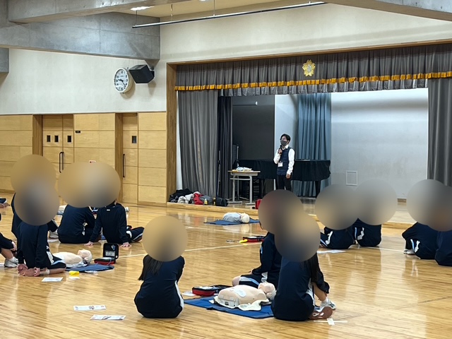 東京都品川区にございます品川区立荏原第五中学校様にて、9年生(約130名)の生徒様を対象とした、AED(自動体外式除細動器)を使用した心肺蘇生法講習会を開催いたしました。